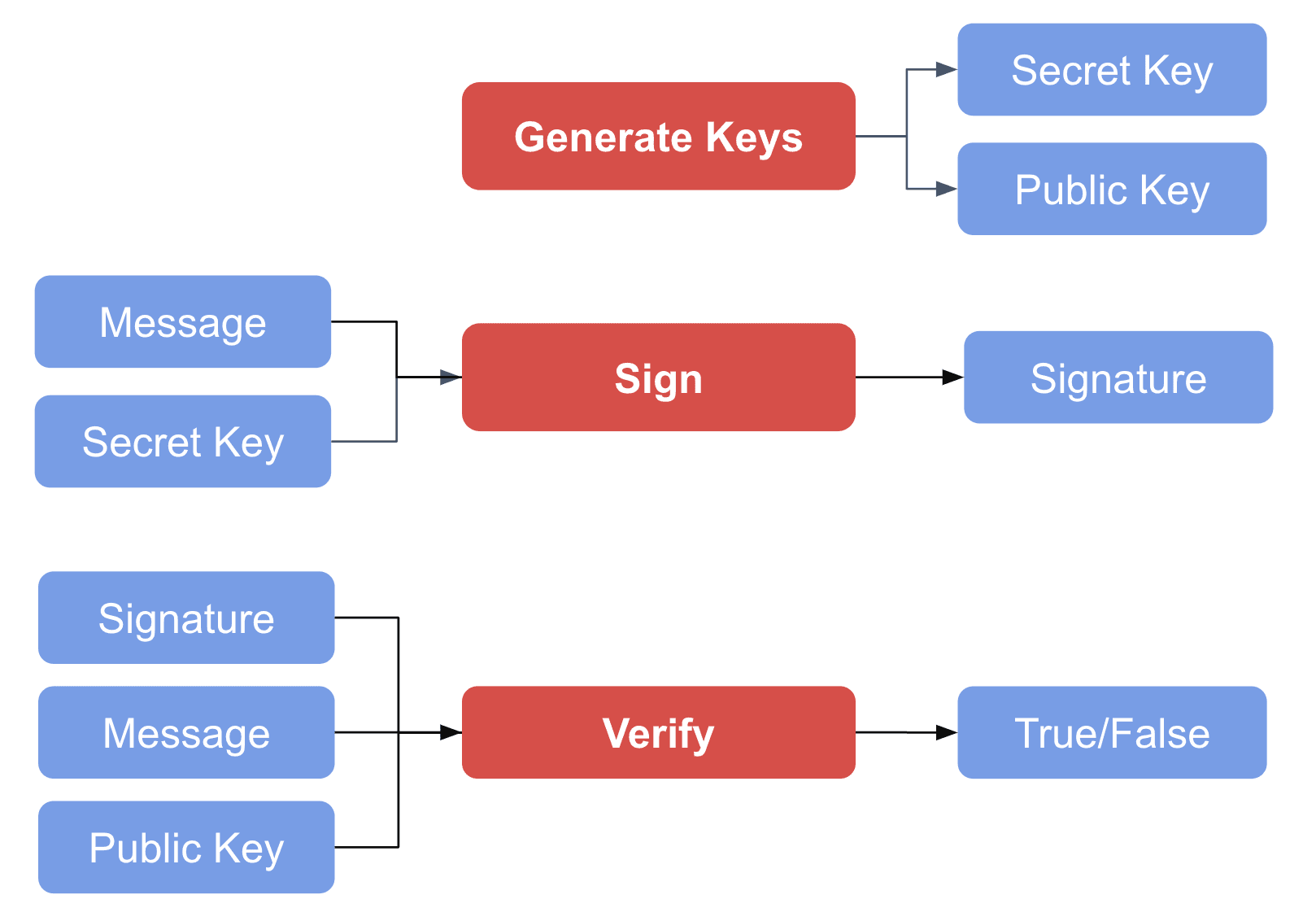 Signature schemes consist of three methods: